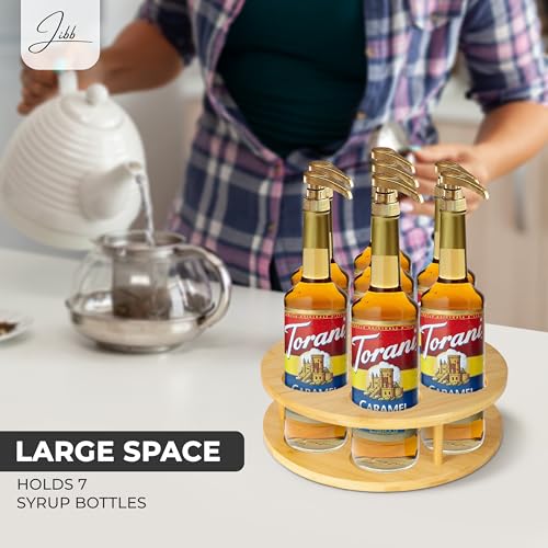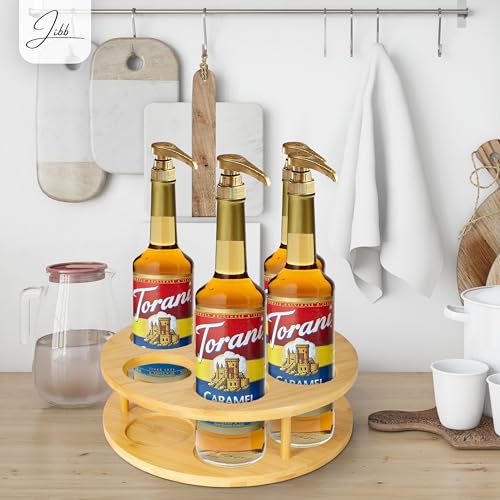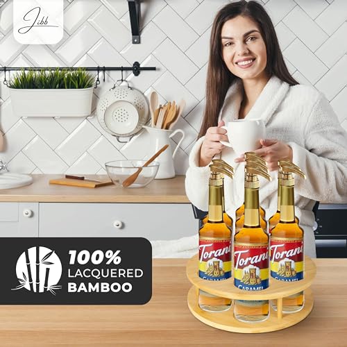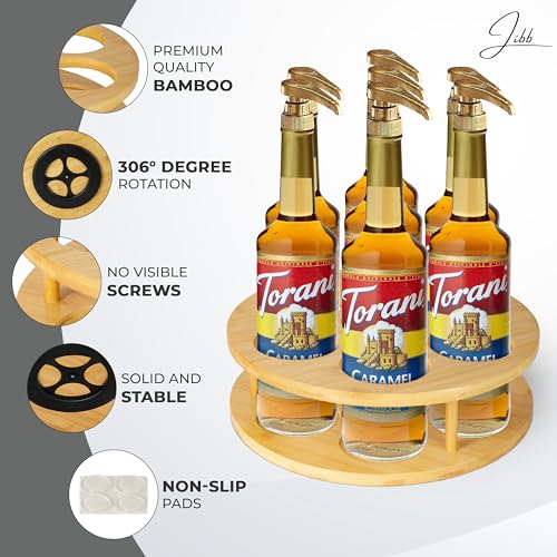 - Innovatively Designed Coffee Syrup Rack: Our Jibb Rotating Coffee Syrup Rack is the perfect coffee bar syrup organizer, boasting a sophisticated bamboo construction that ensures durability and stability. It's a must-have for any coffee enthusiast.