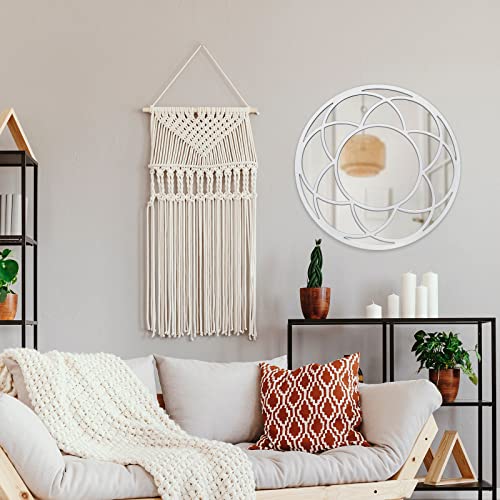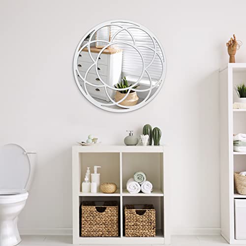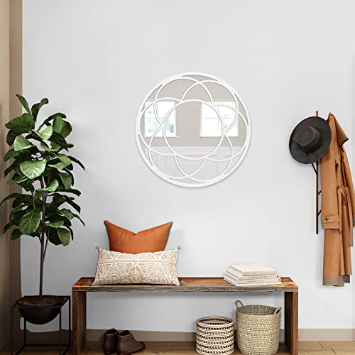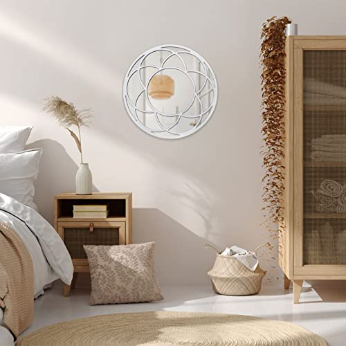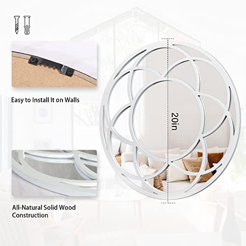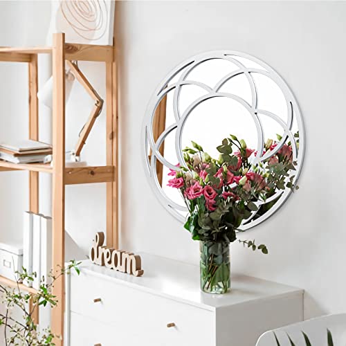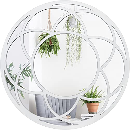 JJUUYOU Round Wall Mirror Decor Circular Mirror for Bathroom,White Rustic Mirror Home Wall Decor Wood Frame Make up Circle Mirror for Living Room