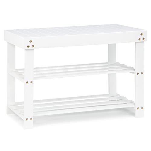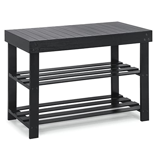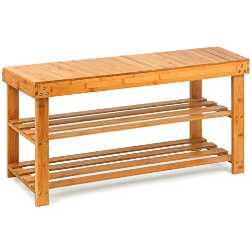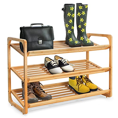 Home Hallway Furniture JMLHMXC Bamboo Shoe Rack Bench, 27.5”L*11”W*11.6”H Extended Edition 3-Tier Shoe Rack for entryway,Wooden Shoe Shelf Organizer Holds up to 220