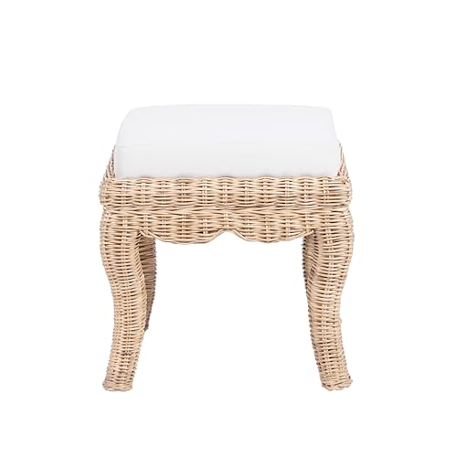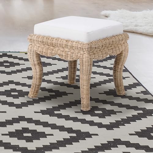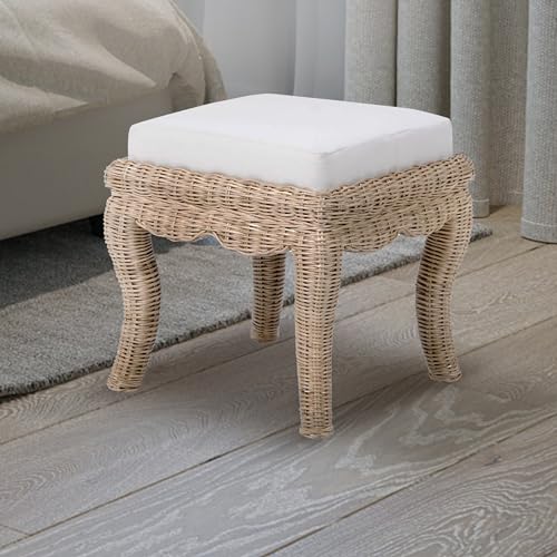 - Perfectly designed for any vanity, our art deco inspired stool is a beautiful way to infuse bohemian decor into your space. Crafted from mango wood and rattan, the handwoven wicker stool is a stylish yet comfortable way to add seating. The curved legs and cushioned seat will elevate your vanity area with a designer touch.