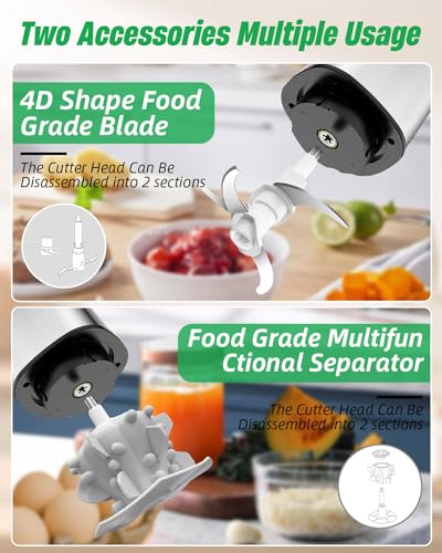 - Excellent 4D Blade Design: The mini food processor's blades are made of 304 stainless steel and contain 4 sharp double-layer blades for long-lasting and safe performance. These blades accurately slice salad ingredients, chop onions in seconds, shred cabbage efficiently, and blend frozen fruit with ease. It also comes with a blade protective cover to easily protect it from accidents when not in use.
