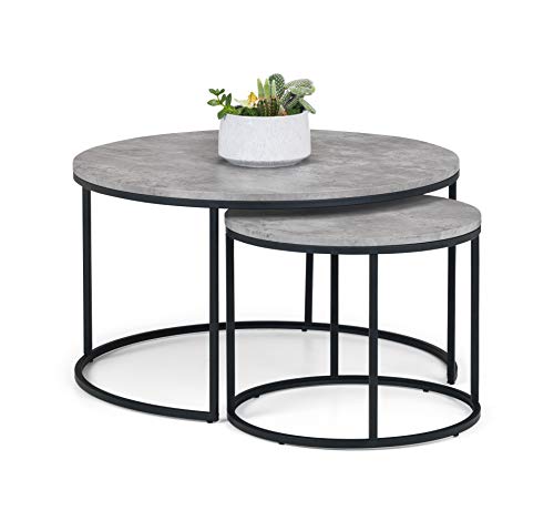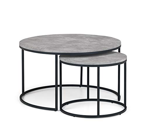 Home Living Room Furniture Julian Bowen Staten Round Nesting Coffee Table, Concrete Effect