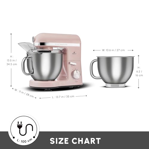 - ELEGANT AND MODERN DESIGN: Karaca Mastermaid Chef Pro Stand Mixer, with its various colour choices and elegant design, is all you need when it comes to mixing dough and creating many delicious recipies. Its 35x24x34 cm dimensions, modern and vibrant design allows an elegant and professional look on your counter and in your kitchen. Just be sure to check our all colour choices available to find the best fit for your kitchen.