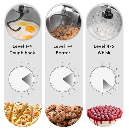 - EFFORTLESS MIXING: With its 1750W power, effortlessly mixing dough has never been easier. The Karaca stand mixers have self-rotating stainless steel bowls. This mixer stand includes a dough hook, whisk, wire whisk, bowl, and a stand for mixing and kneading. With its power and the bowl's non-stick surface, you will be saving valuable time and energy. From cakes to homemade pasta or pizza dough, the possibilities are endless with this professional stand mixer.