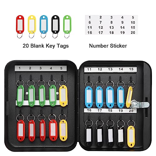 • Convenient Key Cabinet Set: This key box comes with 20 key hooks, 20 key plates in 5 colors including key rings and identification labels that make it easier to mark and sort your keys