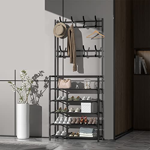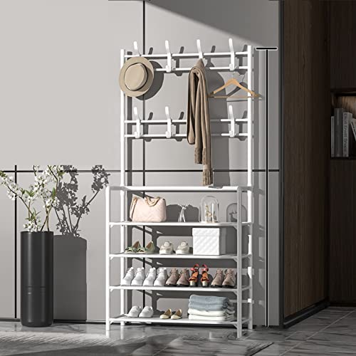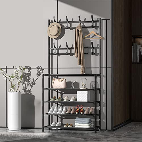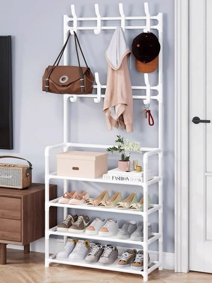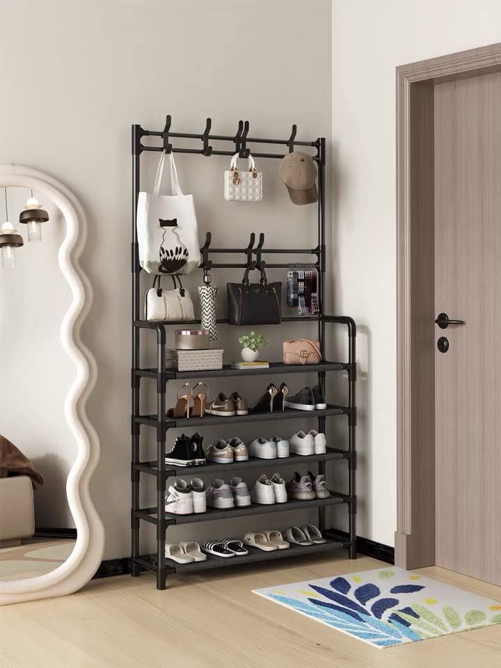 - Unique Design: This standing stand with shoe rack, multi-layer design, not only for placing clothes, but also to store shoes, bags and other items, saving space.