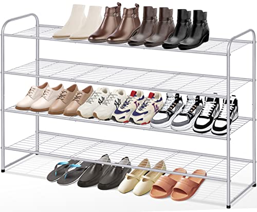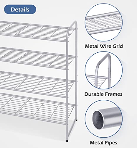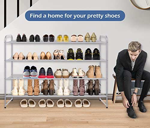 KEETDY 4-Tier Long Shoe Organizer for Closet Floor, Wide Shoe Rack for Closet, Stackable Shoe Rack for Entryway Metal Shoe Shelf for 30 Pairs Men