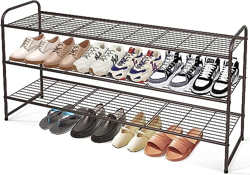 • 【Display Boots Easily】 Unlike other 3 tier shoe rack that can only store flat shoes, our wide shoe rack organizer fit boots well, the height of shelf distance is 8 inches, roomy space to keep shoes shape, even the snow boots and rain boots can be stored easily;