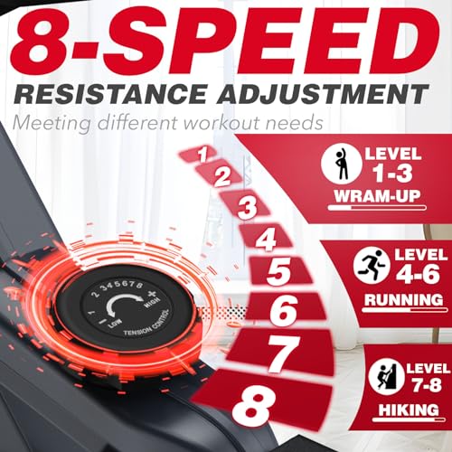 - 8 Levels of Magnetic Resistance Adjustment- Recumbent exercise bike with 8 magnets.Mute technology of dual reluctance system for recumbent bike to give you a quieter exercise experience.