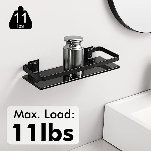 - Sturdy Construction: The maximum load of each shower shelf is 11lbs/5kg when screw mounted onto a solid concrete wall. The brackets are made of sturdy metal without any plastic. The high-quality material and SUS304 stainless steel screws ensure your glass shelves are durable and protected against rust.