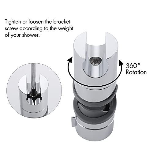 • 360 Degree Rotation: The universal shower head holder can rotate 360 degrees freely. To make it easier to adjust the spray angle, you can tighten or loosen the bracket screw according to the weight of your shower.