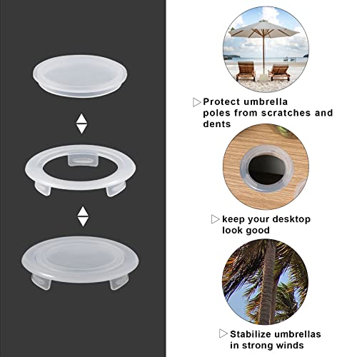 - Package Content: You will receive 2pcs patio table umbrella hole plugs and 2pcs patio table umbrella hole rings. Our patio table umbrella hole cover sets fit for outdoor glass or acrylic tables with 2 inch/5 cm holes. Suitable for umbrella poles with the diameter of 1.65 inch/ 4.2cm or smaller. Please check if your table umbrella hole can match our products before buying.