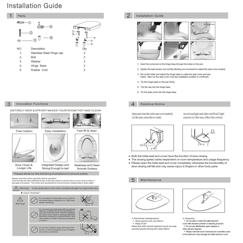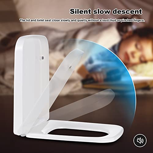 - 【Quiet in Use 】With built-in soft close mechanism, the toilet seat can close down gently and quietly. The toilet seat and lid close slowly and quietly without loud slamming noises or pinching your fingers. It will also not wake up your family during sleeping time.