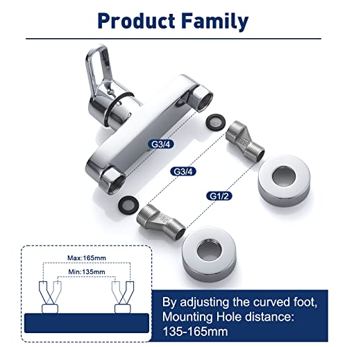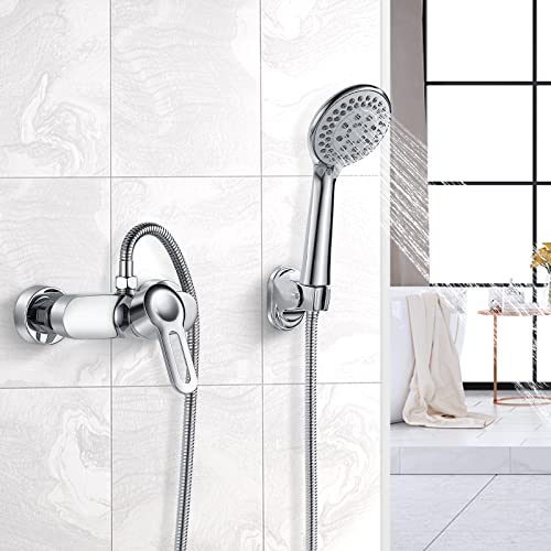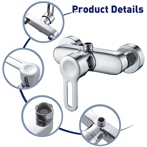 • ✦ EASY TO USE : Wall mounted shower mixer tap with single handle design lets you conveniently open or stop water flow from the spray head. High shiny chrome coating keeps scratch and tarnish-resistant for a lifetime of use.