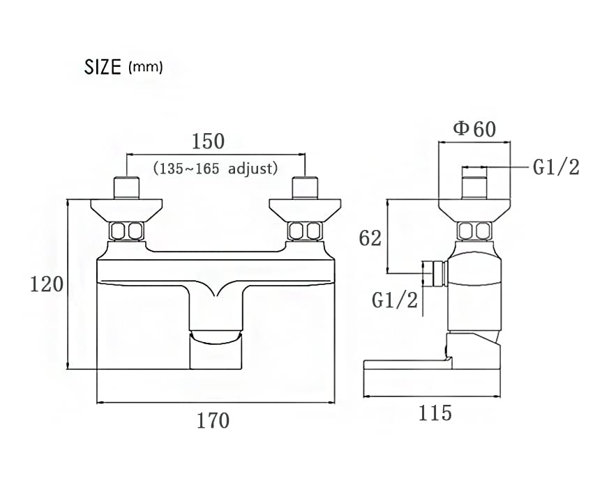 • ✦ UNIVERSAL SIZE : Outlet 1/2" , Hot and Cold Inlets1/2" , fits existing british standard S connections. All standard shower hoses fit the water outlet for the shower head (Size: G ½, DN15).