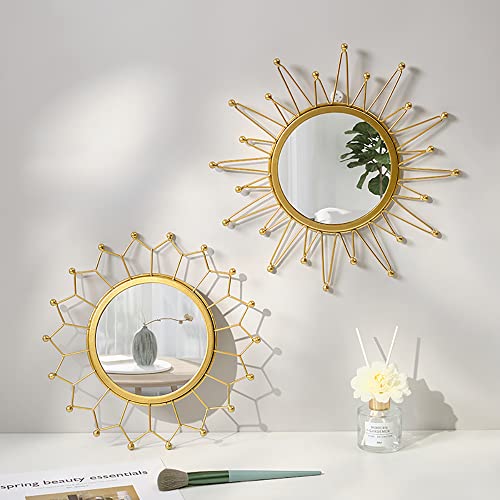 KKTAPOS Gold Mirrors for Wall - Metal Sunburst Wall Mirror Room Decor & Home Decor, Boho Mirror Wall Decor Gifts for Women & Moms (Medium, Flower