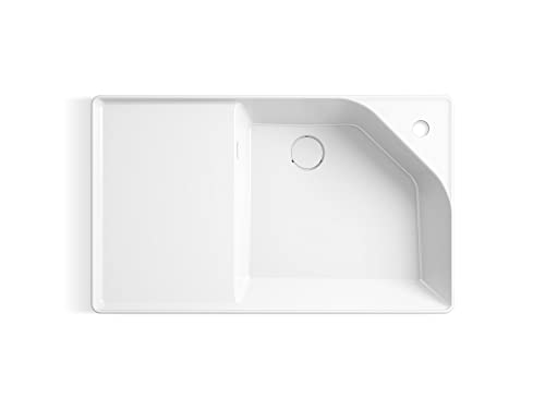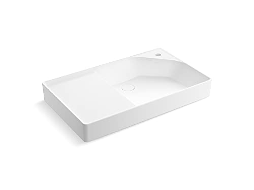 - Deep square basin with a contemporary design minimizes splash