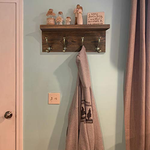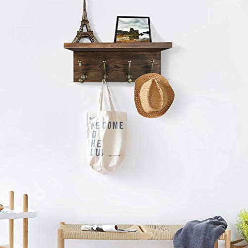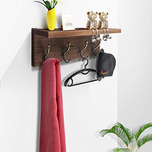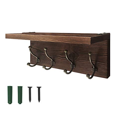 Kolymax Rustic Coat Rack Wall Mounted, Brown Solid Wood Entryway Shelf with Hooks Perfect Touch for Your Mudroom, Kitchen, Bathroom and More