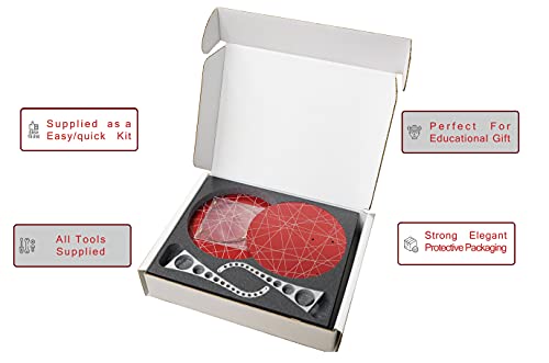 Product Description Tensegrity Table Appears to float in mid air Tensegrity tables are visually and mechanically quite different. The table top almost appears to float in mid air, with almost incomprehensibly thin dangling wires to the ground. At first glance it appears almost impossible. It's only in under inspection do you realise the physics involved...even then some people don't find how it works intuitive. Strong All our tensegrity tables now have strong (28lb )12.5kg (max) breaking strength centre cable. The design has been carefully perfected and upgraded to give a thin but strong wire. All centre cables are assembled here in the UK. Note: don't put anything near a 9kg weight on the table. Cables are under tension before any weight is place on the table. Precision CNC in England This tensegrity is properly engineered. What do we mean by that? There's no glue. No plastic components. Everything has been designed and prototyped by us, for production in our factory in Maidenhead, England. We take take pride in what we do. We control the quality and we make things to last. Levelling and tension adjustment Hidden underneath the base of the table it's a fully adjustable mechanism to allow each of the outer cables length and tension to be adjusted. This ensures the table is perfectly level and also allows increase the tension to the table is rigid. Each outer cable is rated to 15lb+ (6.8kg) with a stronger 24lb (12.kg) centre cable. Meaning it is unlikely you will break them. The cables are surprising thin which giving an interesting visual effect. Note: centre cable will always usually fail before 15lb (6.8lb) weight is applied due to having a preload tension. We recommend limiting to 2.5lb (1kg) weight on the table to give a good safety margin. Our CNC machine Tensegrity table is supplied as a kit. Our kits are supplied in a custom foam insert which we have designed and made ourselves. This ensures that all the parts are safe and secure while in transit. It also doubles as an assembly aid, holding the engine still during assembly.