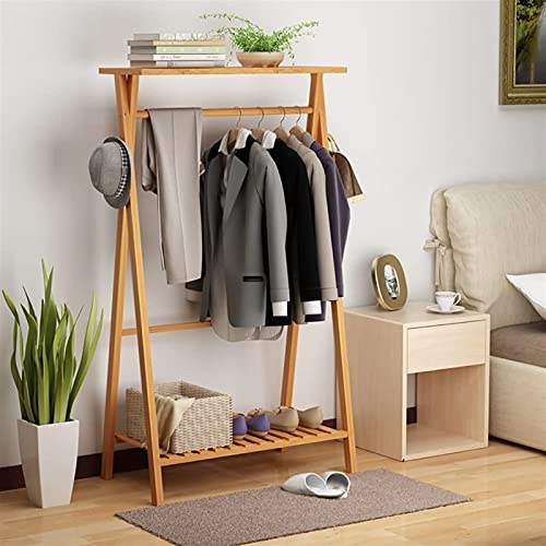 Home Hallway Furniture KRHINO Clothes rack and hat rack Bedroom Vertical Coat Rack Door Simple Clothing Storage Rack Bamboo Wood Multifunctional Clothes Rack Shoe Rack