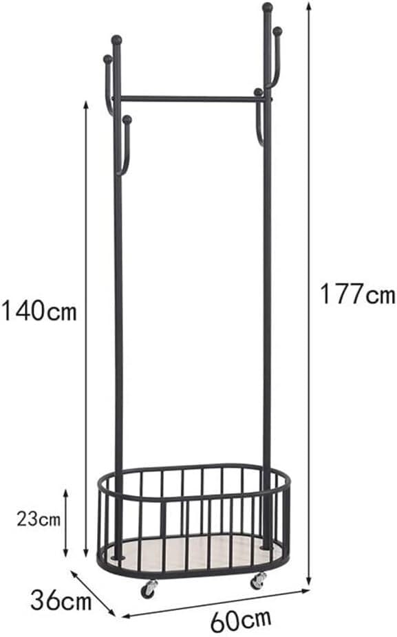 KRHINO Clothes rack and hat rack Movable Cloak Rack Hanging Coat Rack Household Coat Rack Rolling Coat Rack For Hanging Clothes (color: Black, Go