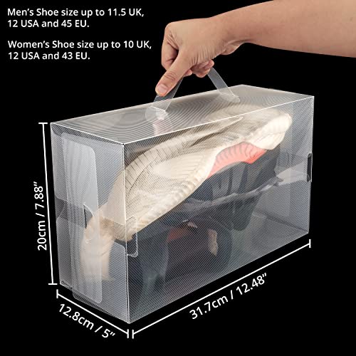 - SHOE STORAGE SOLUTION: These 10 shoe storage boxes are perfect for storing and organising your shoes. The boxes come flat-packed with instructions, so they are very easy to assemble. Once assembled each shoebox measures L31.7 x D12.8 x H20cm (12.48 x 5 x 7.88 inches). These boxes can store men's shoe sizes up to 11.5 UK, 12 USA and 45 EU and women's shoe sizes up to 10 UK, 12 USA and 43 EU. When flat packed, the boxes measure L45 x W28 x H0.2cm (17.72 x 11.02 x 0.08 inches).