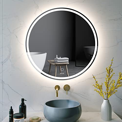 KWW 70 cm Large Modern LED Round Mirror Bathroom Vanity Mirror, Color Temperature Adjustable, Wall Mounted, Anti-Fog Dimmable Lights Makeup Mirro