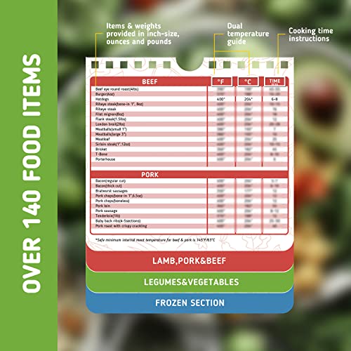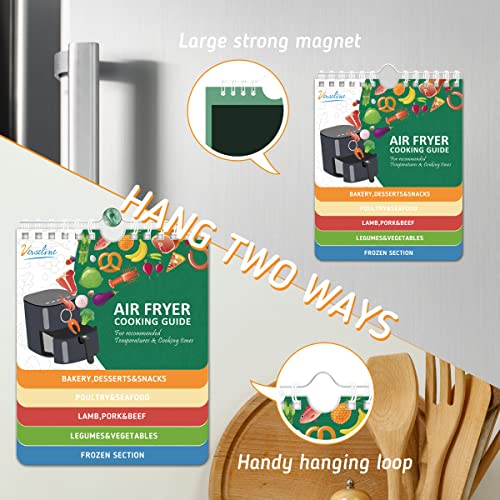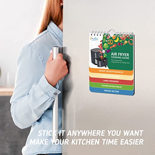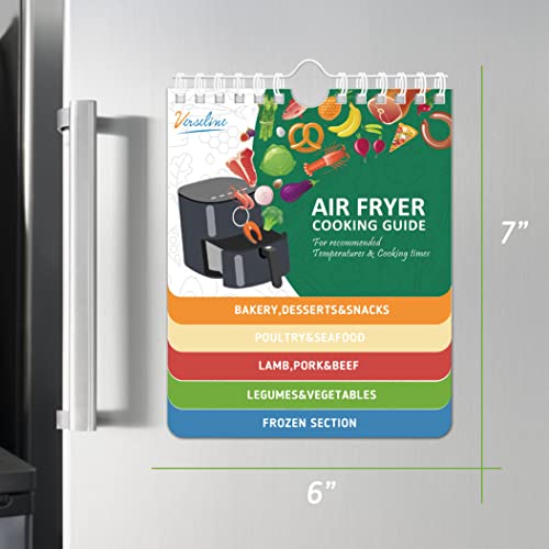 - USE FOR A LONG TIME - 7” x 6” inches with durable, PVC plastic pages. For easy access, hang the cooking accessories measurement magnet or stick it on your refrigerator. This air fryer magnetic chart is waterproof and tear-proof and has a strong magnet for years of use.