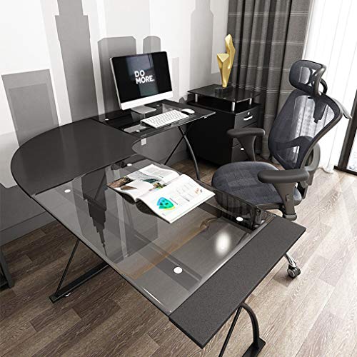 HomeHome Office Furniture L-shaped Corner Desk, Company Workbench Can Support 500kg Weight, Home Writing Desk, 8mm Thick Tempered Glass Computer Desk, Easy To Clean, Wear-