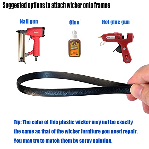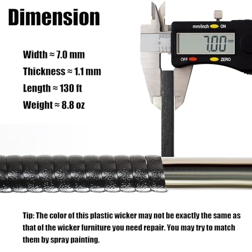 Laphivieh 130 Ft Black Wicker Repair Kit Wicker Repair Supplies Plastic Rattan Material for Patio Chair Repair Flat Wicker Furniture Sofa Table R
