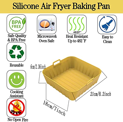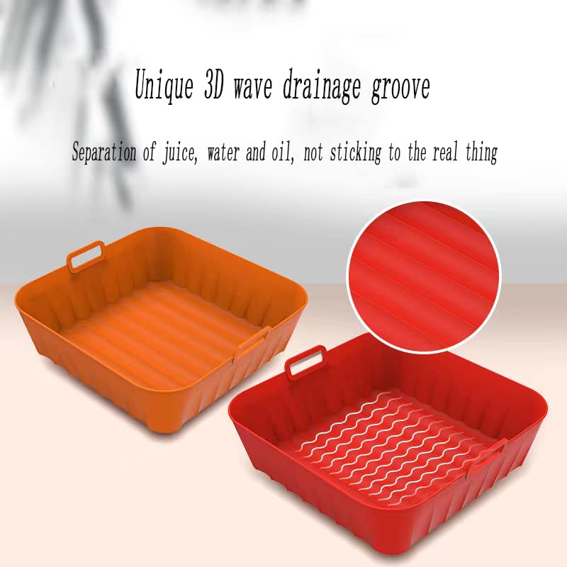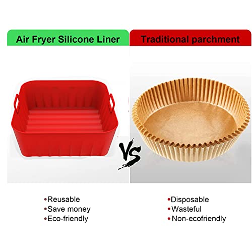 - 【100% Food-Grade Silicone Pot】: Our square air fryer liners are made of food-grade silicone, which is oil-proof & heat resistant, withstands temperatures up to 450°F. Won't affect the taste of the food at all! The Soft silicone also makes it easy to hand wash.The carefully designed 360°air circulation structure makes the heat distribution more uniform so that your food can be cooked perfectly in a shorter time & no more risk of flammability.