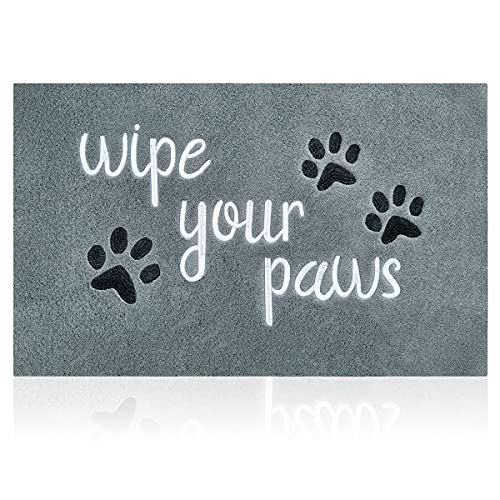 • ❤ CAPTURE DIRT AND EASY TO CLEAN: Funny embroidered concave letters and raised edges help this versatile mat more effectively capture dirt,removes debris better than other outdoor mats.This doormat runner helps to scrap off dust, grit, mud, sand,grass or snow and absorb moisture from shoe.The doormat indoor entrance can be cleaned quickly,just spray water over the outdoor rugs to get cleaned or by hand with a vacuum cleaner.