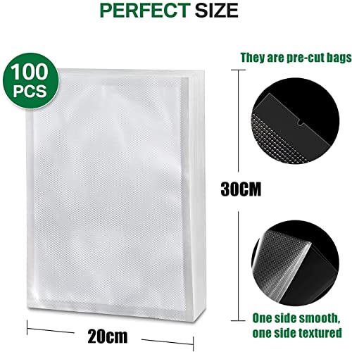 - [Size] 20cm x 30cm, included 100pcs bags in total, is stable for hot and cold, cookable, freezer, microwave and dishwasher, especially for sous vide cooking; Suitable for all brands of vacuum sealers