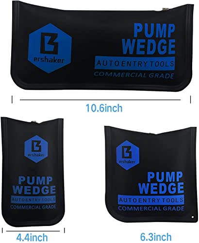 Product Description Commercial Grade Air Wedge Bag Pump Professional Leveling Kit & Alignment Tool Inflatable Air Shim Bag Key Features Inflatable air bags with dozens of usesHard-wearing, non-marring materialSealed and glued with TPU and high frequency weldingUsed for fitting, fixing or levelling; slimline, slides into a 2mm gapThe inflatable air Wedge won't scratch or scuff surfaces unlike a metal jackQuick release push buttom allows one-hand operated for controlled inflationUpgrade PP board insertion (stronger than ABS board), not easy break Highlights 1. Rounded corner design allows options of different points of entry at access point. 2. High quality sturdy hand pump design with easy push button air release valve 3. Longer 10 inches hose design from bag to pump allow manipulation of the air bag into a further distance 4. Thin as a hand of playing cards at 3/32 inches when deflated, inflates up to 2 1/2 inches to raise, and level your work space. Air Wedge Bag Kit Our air bags are made from durable materials and equipped with a bulb pump and release valve for quick and easy inflating and deflating.3 sizes to meet a variety of work needs,from 150 to 500 pound load rating.Great for multiple jobs and applications.Equipped with 4 anti slip wedges of different sizes, easy to operate. When you need to lift a heavy fridge, or washing machine, or sofa because you have something trapped underneath,it's an excellent tool. When you need to pry something gently and forcefully, our pneumatic pump wedges provide a variety of lever capabilities and are very suitable for a variety of jobs and applications. Package Content 3 Piece(small,medium,large )air wedge 4 Piece free non scratch tool NOTE Please Avoid sharp objects in direct contact with the air wedge. DO NOT OVER INFLATE to avoid any damage to the bag or valve. To deflate after using it and place the air wedge in the safe place for your next emergency! Large Air Wedge Max Load Capacity : 500 LBFinish installation : YESMaximum inflated gap : 3"Internal Stiffener : PlasticAir tube length : 9.8"Size : 10.6" x 5.1" Medium Air Wedge Max Load Capacity : 300 LBFinish installation : YESMaximum inflated gap : 2.5"Internal Stiffener : PlasticAir tube length : 9.8"Size : 6.3" x 6.3" Small Air Wedge Max Load Capacity : 150 LBFinish installation : YESMaximum inflated gap : 3"nternal Stiffener : PlasticAir tube length : 9.8"Size : 7.5" x 4.4" Windows You can use air wedge bags to fine-tune their positioning with easy adjustments from all 4 sides resulting in faster, more secure placements to install and Save time. Furniture With rounded corners, stiff durable edges, smooth exterior and internal stiffener for easier insertion, our air pump wedge won't scuff, scrape or leave a mark on expensive cabinetry, furniture or walls. Auto Wedge Tool Just insert the Air Wedge and pump with your hand or foot to fine-tune their positioning with easy adjustments resulting in faster, more secure placements.