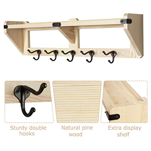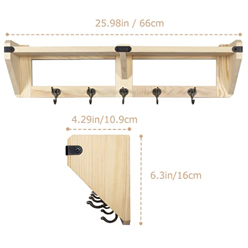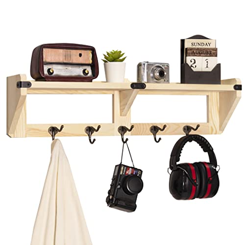 - Sturdy Wall Coat Hooks - Lavievert coat hooks for wall is processed out of 100% solid pinewood and features natural grain, sturdy, durable and corrosion resistant. 5 uniquely designed metal hooks make it possible to hang more things than regular hanging racks do. It helps to make full use of space and makes your room clean and tidy by organizing your gadgets.