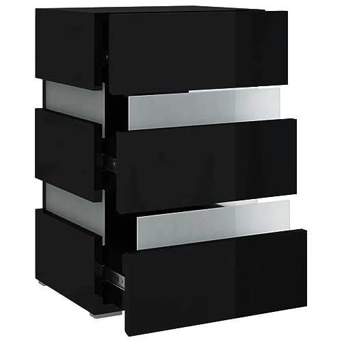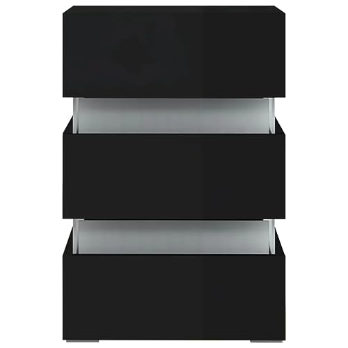 Home Bedroom Furniture LED Bedside Cabinet High Gloss Black 45x35x67 cm Engineered Wood