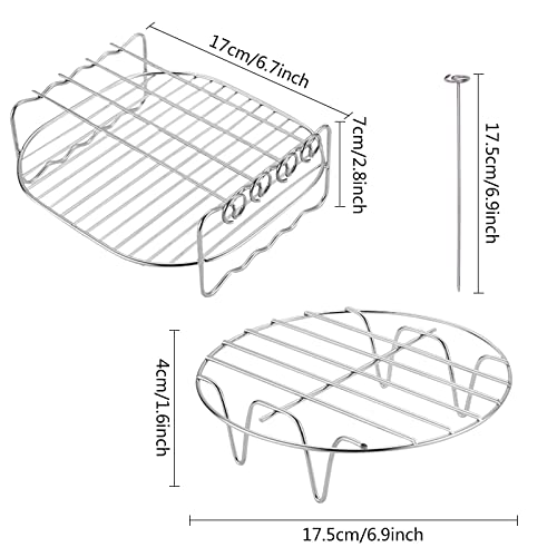 - 【Widely Applicable】Our air fryer rack stands can be used with grills and skewers, which can help you make kebabs, steaks, vegetables, fruits, pizza, barbecue, etc. This is also a thoughtful holiday gift for friends and family that adds even more convenience and versatility to their air fryer.