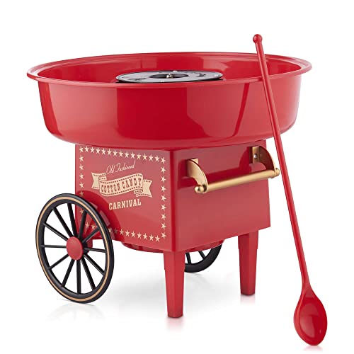 • PORTABLE AND DURABLE – The likeable and long lasting will take candy lovers straight to heaven from any location, the powerful and durable appliance is easily transportable and uncomplicated to set up. The materials used for the manufacturing of the candy floss maker allow you to move the speciality appliance from location to location without worrying about the product losing functionality after minor bangs and knocks.