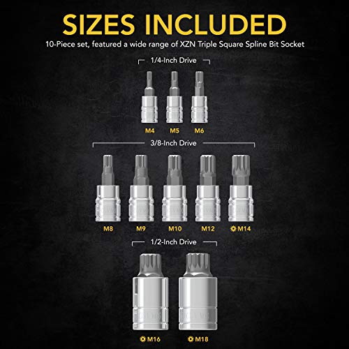 - MUST HAVE - 10-Piece set XZN Triple Square Spline Bit Socket. Crafted and Designed to work on European automotive like: BMW, Mercedes, VW, Audi, Porsche, and most other European vehicles.