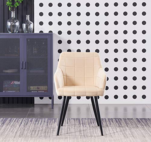 Life Interiors Stitched Square Camden Velvet Dining Chair, Cream