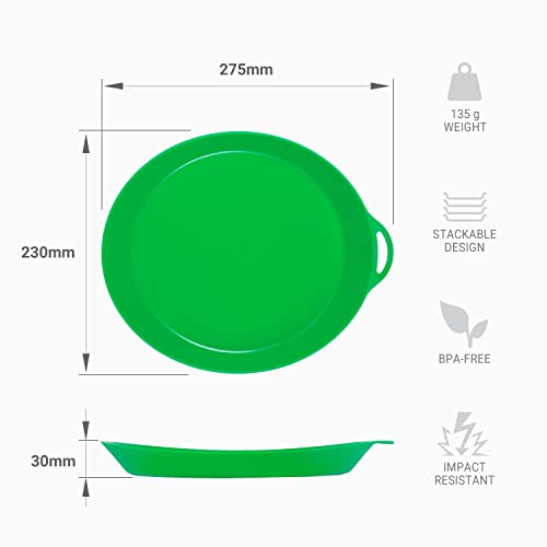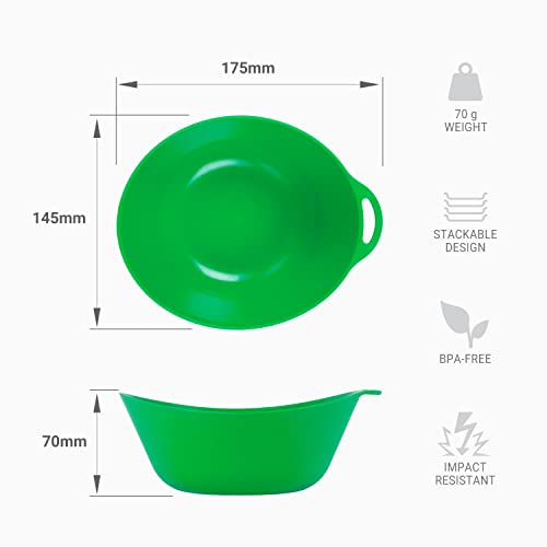 • DIMENSIONS: Plate: 230 x 275 x 30 mm (Weight: 135 g) | Bowl: 145 x 175 x 70 mm (Weight: 70g) | Cutlery: 180 x 40 x 15 mm (Weight: 30) |300ml Mug: 95 x 110 x 80 mm (Weight: 75g)