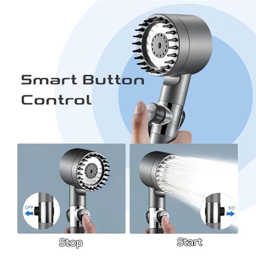 - [Stop Button]:Handheld Showers with a Stop Button,by pressing the stop button, the water outlet is stopped quickly and efficiently. Flexible use, water-saving and energy-saving.