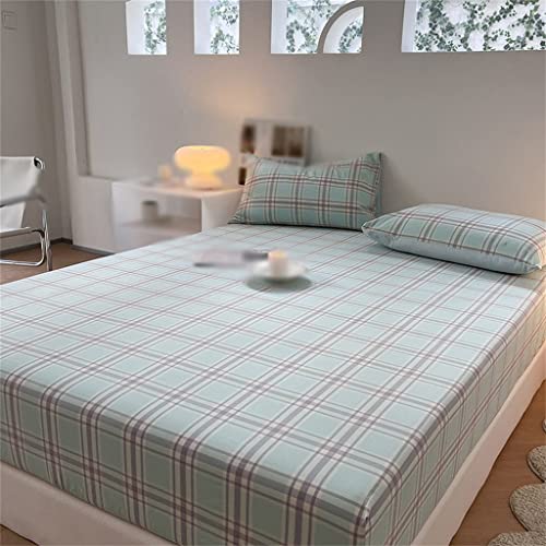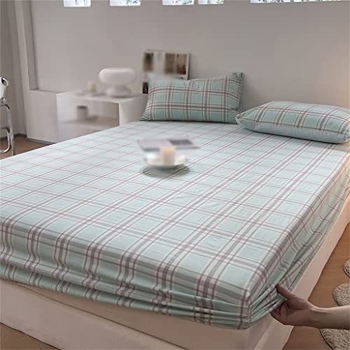 LIUZH Clip Cotton Bed Hat Single Piece Summer Style Bed Cover Mattress Protection Cover Bed Cover Green Plaid (Color : D, Size : 150 * 200CM)