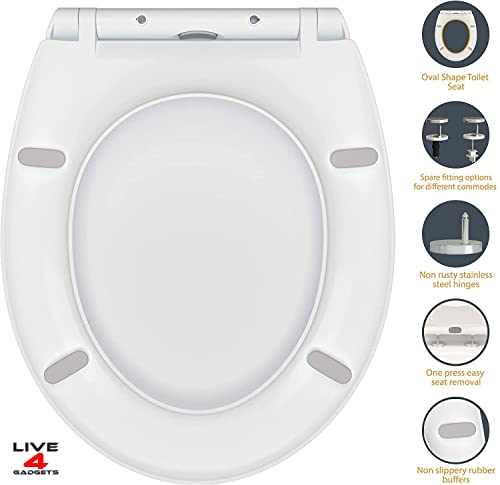 - Practical WC soft close padded oval shaped hinge which stops the live4gadgets toilet seat lid from slamming, our toilet seats are ideal for en-suites when you don't want to disturb others