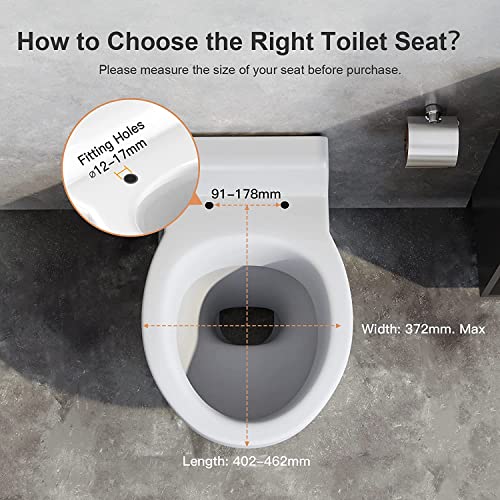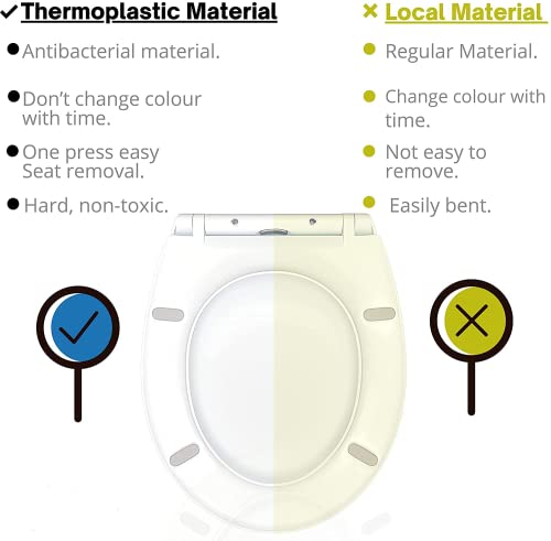 - Universal Toilet Seat: Oval (O) Shaped Standard Elongated Tolet Seat Cover light weight heavy duty, our modern white toilet seat is suitable for most of manufacturers 'oval shape pans toilets Dimension 41cm x 35cm x 4cm