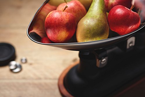 - What You'll Get - Living Nostalgia Mechanical Kitchen Scale with Bowl. A scale made of Cast Iron with Acacia Wood Stand, Black - Stylish and functional, perfect for any kitchen.