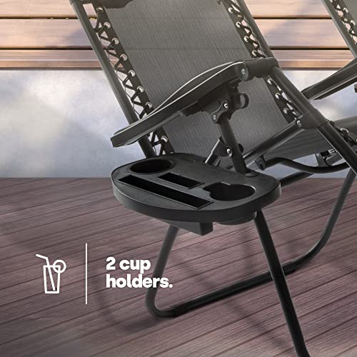 • CLIP ON SIDE TABLE - Slotting around the tubular legs of your gravity or camping chair, sun lounger or most styles of tubular furniture and providing a hands-free cup holder, MP3 or phone area and book or tablet notch