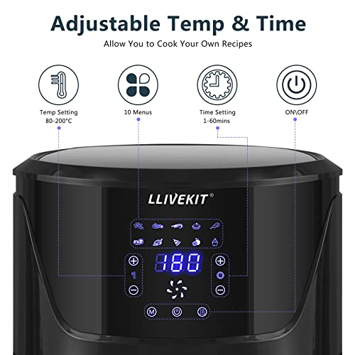 - Easy Operation: Would you like to cook easily? Then discover this touchscreen, smartly operated low fat air fryer! The basket-style air fryer has an LED touch screen where you can set the time (0-60 minutes), the temperature (80-200°C) or select the keep warm function (2h). The fryer also comes with 10 menu modes, so you can choose the correct cooking mode depending on the ingredients
