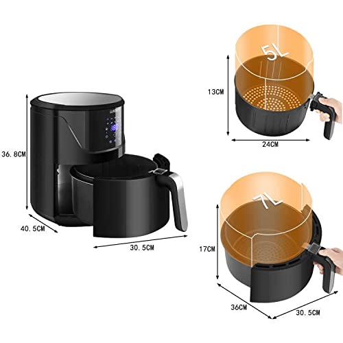 - 7L XL Capacity: You need a large capacity fryer if you have a large family! This 7L large-capacity fryer offers plenty of cooking space with a powerful 1800W heat, making it perfect for family or friend gatherings. You can easily prepare fries, wings, pizzas, steaks, cakes, breads and more with our beautiful recipes