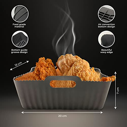 - ✅[Grease Free and Tasteful Food]:Airfryer silicone liners has bottom designed with soft silicone lines to improve air circulation, prevents the food from becoming drenched in oil, distribute heat more evenly, and produce crispier food.